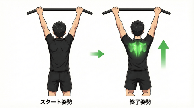 スキャプラ・プルアップ(肩甲骨懸垂)は、懸垂の「最初の10センチ」を攻略するための非常に重要なトレーニングです。