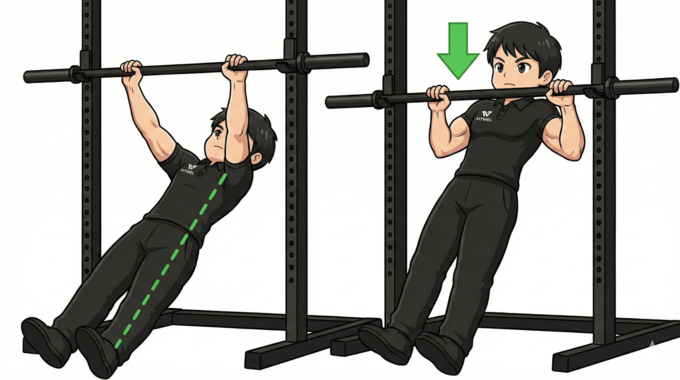 懸垂よりも強度は低いですが、正しいフォームで行えば非常に効果的です。やり方は次の通り。