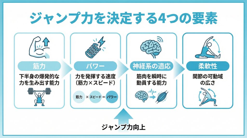 ジャンプ力を決定する要素は以下の4つ。